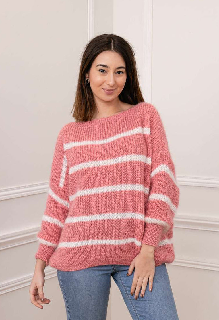 gestreifter Oversize Pullover rosa